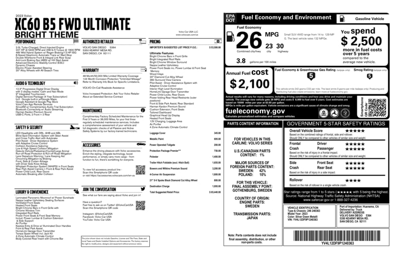 2023 Volvo XC60 B5 FWD Ultimate Bright SUV
