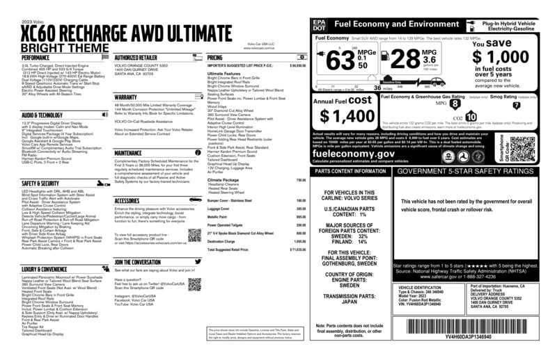 2023 Volvo XC60 Recharge Plug-In Hybrid SUV Ultimate Bright