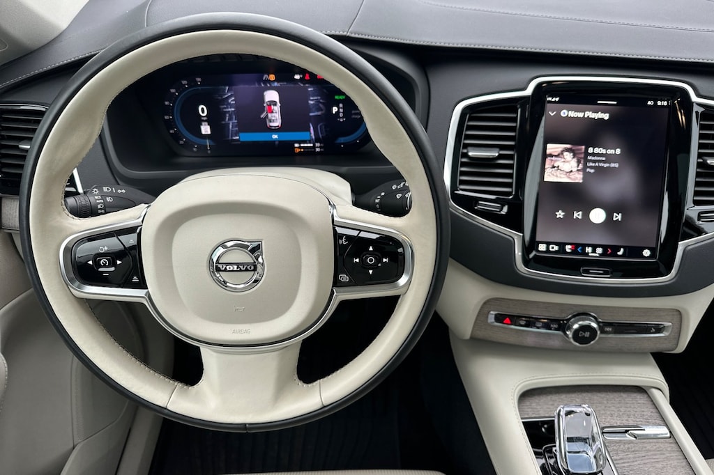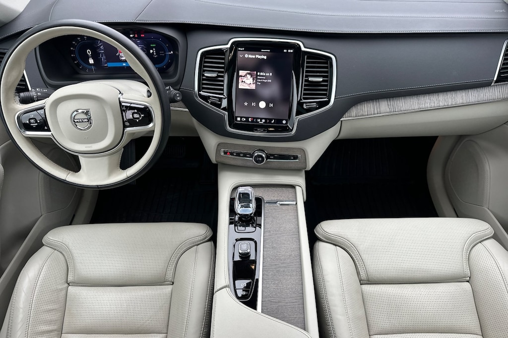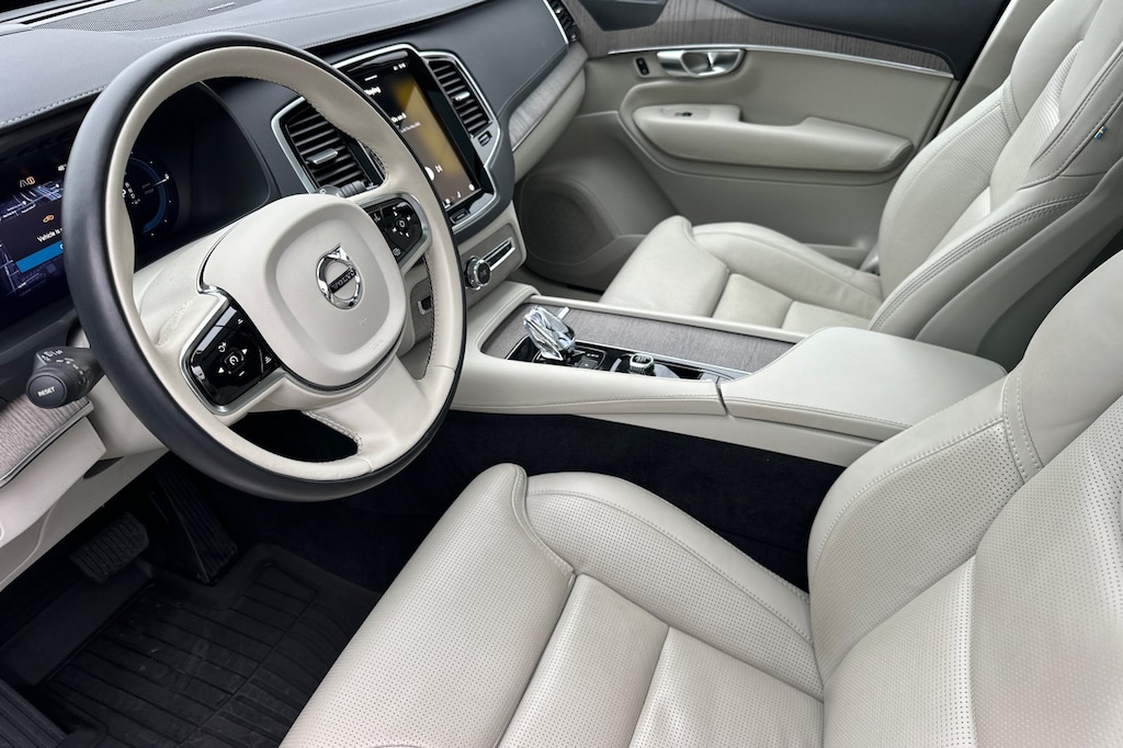 Certified. Clean CARFAX. CARFAX One-Owner. XC90 Recharge Plug-In Hybrid Ultimate, 4D Sport Utility, 2.0L I4 Hybrid Turbocharged DOHC 16V LEV3-SULEV30, Automatic with Geartronic, AWD, Crystal White Metallic, Blonde w/Perforated Nappa Leather Upholstery w/Blonde, Navigation System, Retractable Trailer Hitch, Wheels: 22" 20-Spoke Black Diamond Cut.